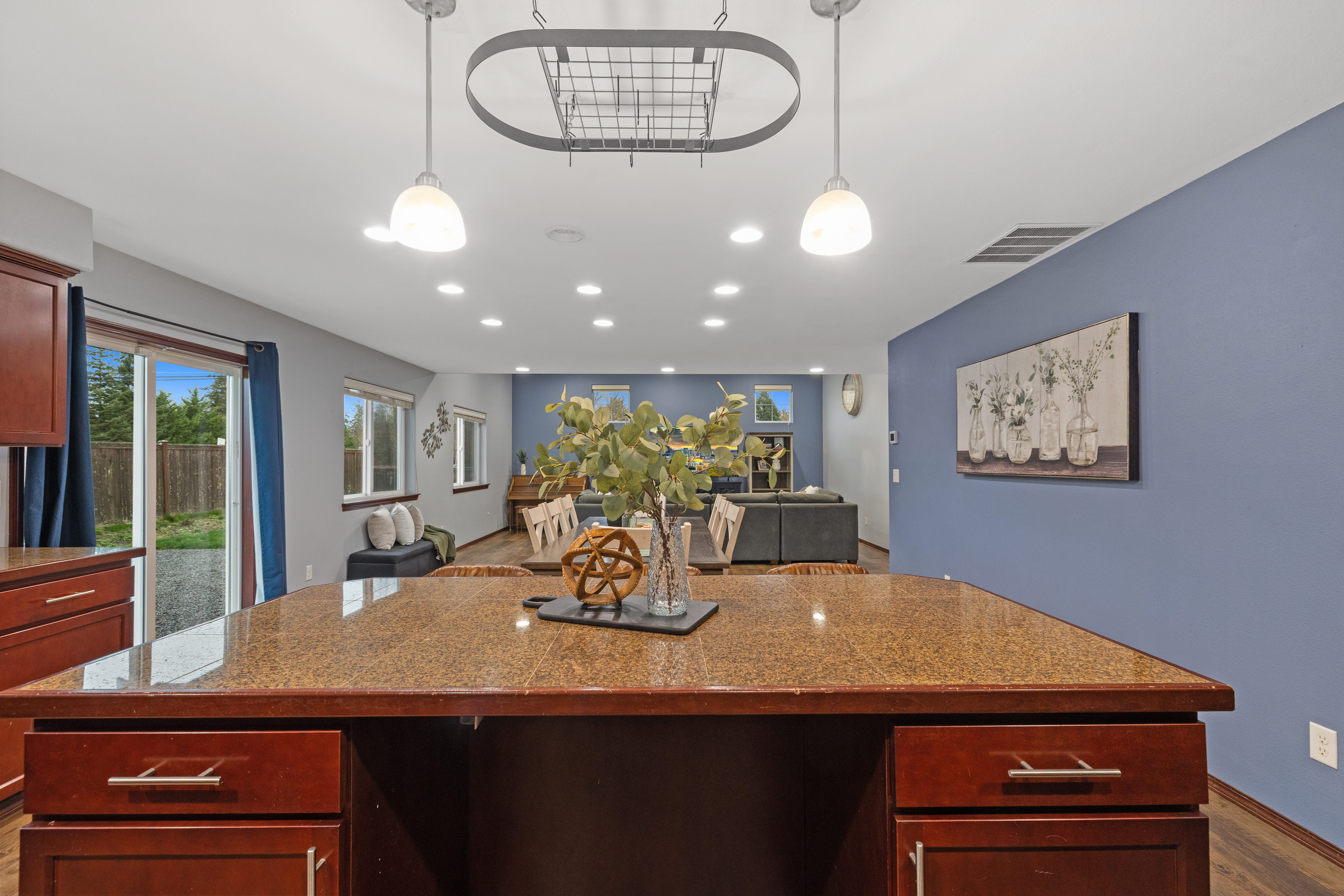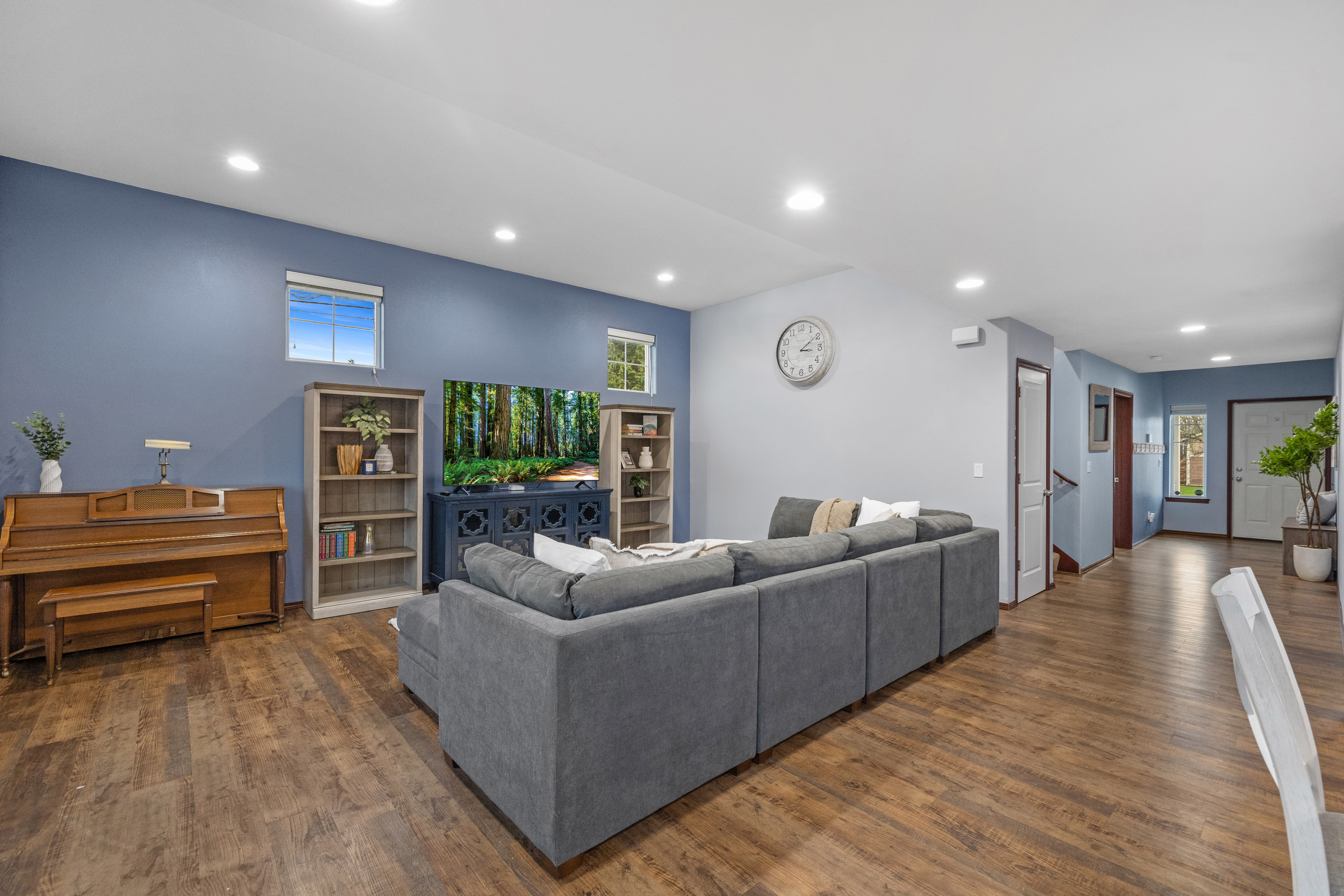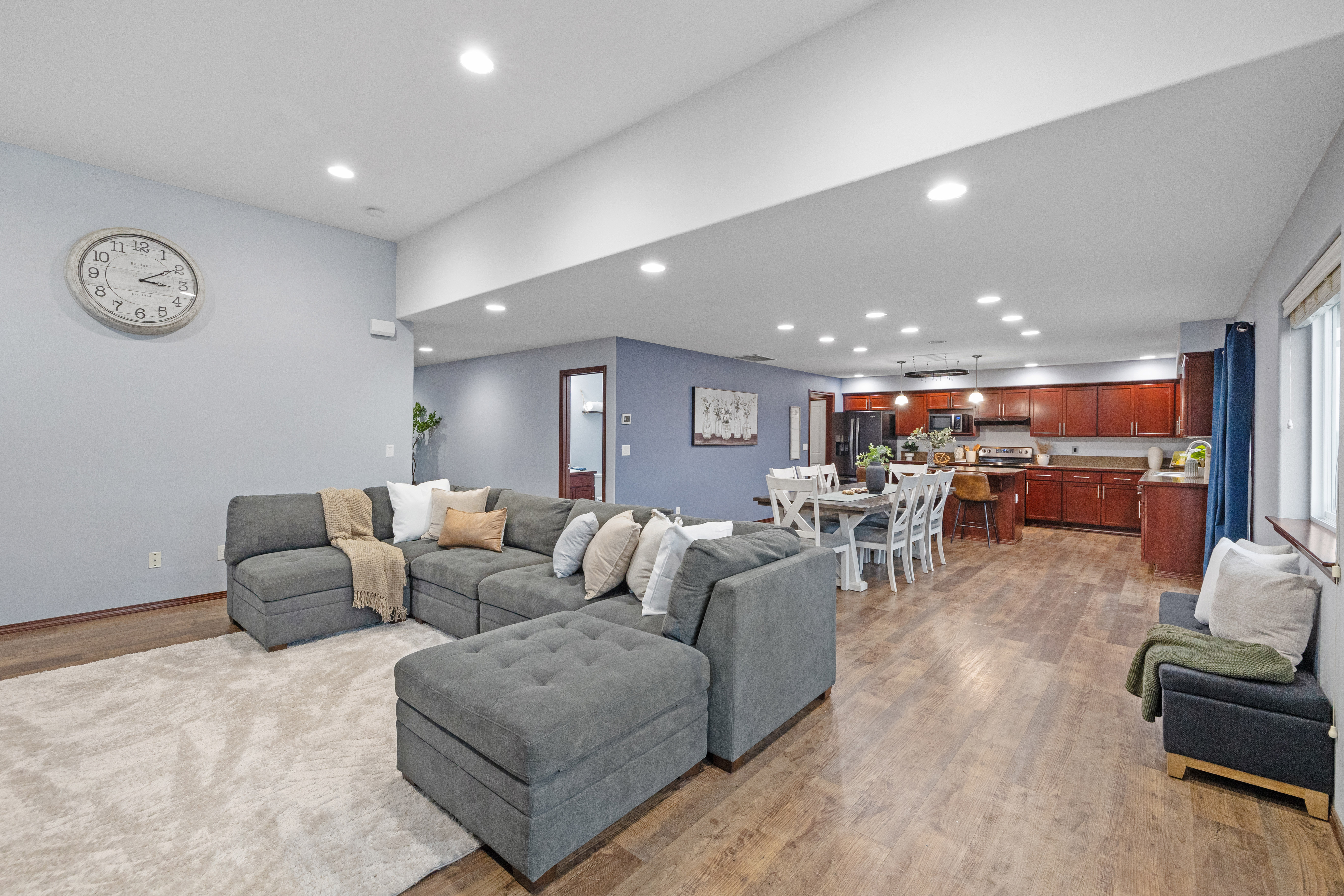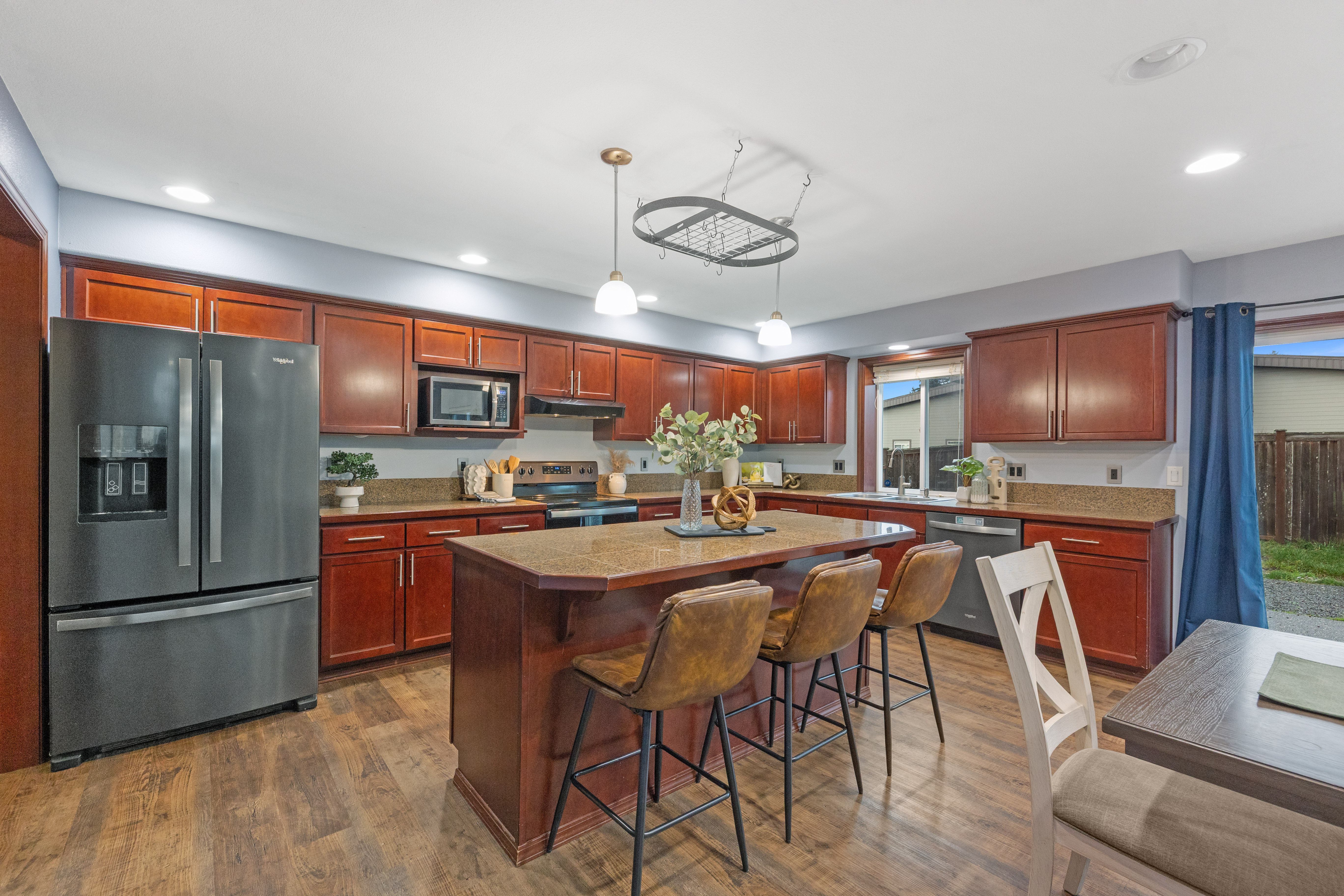 Enjoy spacious comfort and modern elegance in this beautifully maintained two-story home on a desirable corner lot. The inviting living room features warm wood-toned flooring and custom built-ins—perfect for cozy evenings or stylish entertaining. The gourmet kitchen shines with granite countertops, stainless steel appliances, and a central island ideal for casual meals. An oversized dining area provides generous space for gatherings of any size. Retreat to the serene primary suite with vaulted ceilings, or indulge in the spa-inspired bath complete with a soaking tub and glass-enclosed shower. Outside, the fully fenced yard offers privacy, play space, and room to entertain. Plus, explore the potential for a DADU to expand your possibilities.